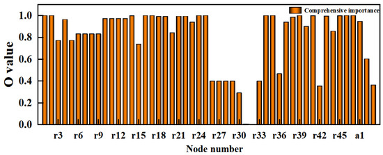 (4) Construct a comprehensive importance evaluation model for complex networks. The calculation formula is shown in Equation (15) above. represents the comprehensive importance of node i. The comprehensive importance of each node is shown in Figure 8.