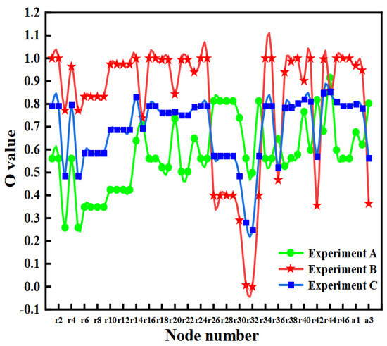 It can be seen from the Figure 9 that the peaks of Experiment A and Experiment C are lower than the peaks of Experiment B, and the troughs are higher than the troughs of Experiment B. It can show that Experiment B can highlight the overall characteristics of the comprehensive importance model of complex network synthesis compared with Experiment A and Experiment C. Experiment B has a higher degree of completion. When the degree of nodes, intermediate centrality, and closeness centrality are used as inputs for the comprehensive importance evaluation model, the model exhibits better performance. Therefore, Experiment B is taken as the analysis object of comprehensive important evaluation model.