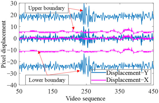 Diverging from conventional object trackers, which prioritize enhancing the alignment between tracking outcomes and designated labels [29], the focus of this section revolves around the acquisition of a continuous sequence of edge feature points. This sequence holds significance as it is subsequently utilized to optimize parameters in a seamless manner. To achieve accurate tracking, the fundamental requirement is that the current pixel displacement of vehicles falls within the confines of the generated tracking search area. In the context of the prior video dataset, Formula (10) is employed. This leads to determining the upper and lower coefficients for the longitudinal displacement model, equating to 1.13 and 1.09, respectively. For the lateral model, the coefficients are 1.1 and 0.98.
