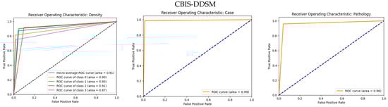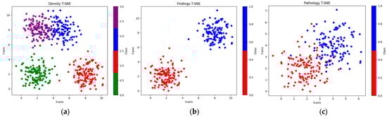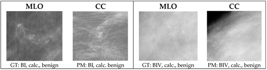 In addition, most studies model the diagnosis problem as a single-label classification, such as detecting the breast density type [,,,], identifying the masses as benign or malignant [,,,], diagnosing microcalcifications as benign or malignant [,], or classifying both masses and calcifications as benign or malignant [,]. Single-label classification ignores the interdependencies between different conditions; for instance, a breast with high density is more likely to be malignant than a breast with low density. In addition, single-label classification requires developing multiple methods, each focusing on one aspect of the problem. These issues can be overcome by using a method based on multi-label classification for identifying breast cancer in an initial phase. A method that formulates the diagnosis as a multi-label classification problem can help to diagnose a patient’s condition comprehensively. It leads to better diagnosis results by considering additional aspects, such as the correlation between the density type, lesion type, and states of the lesions, which radiologists usually perform. It can assist radiologists in their decision making by providing a comprehensive report of the patient’s condition, increasing the precision of their diagnosis.