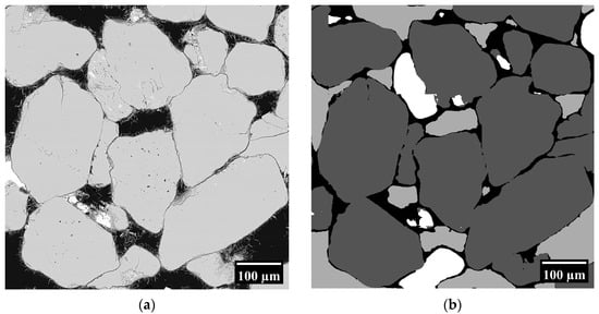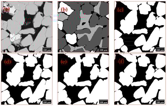 In the field of characterizing the microstructure of heterogeneous material, with the widespread application and development of computer science and digital images, the coupling method of digital image processing and numerical simulation makes it possible to analyze the micromechanical behavior. This method is of great significance for studying the mechanical properties of heterogeneous materials [9]. Yang et al. [10] reconstructed non-homogeneous models, such as a silicate cement and asphalt mixture, based on real images and analyzed the advantages and disadvantages of image-based models and computer-generated models. Ali Abdulqader et al. [11] developed the StereoDIC system for detecting internal defects. This system was successfully applied in uniaxial compression tests of rock cores, suggesting its potential use in estimating material properties. Woodman et al. [12] utilized a coupled discrete element method (DEM) and grain-based modeling (GBM) simulations to accurately represent the microstructure of laboratory specimens. This approach allowed them to study the effects of thermo-mechanical loading on fine-grained sandstone in a detailed and precise manner. Yu et al. [13] successfully estimated the porosity of sedimentary rocks by using digital image analysis methods and pore and crack analysis systems (PCAS). Qian et al. [14] modified an automatic deep learning-based segmentation algorithm for scanning electron microscopy (SEM) images of cement paste. This enhanced approach has enabled the precise examination of the irregularity and roundness of unhydrated cement particles, as dictated by the segmentation results.