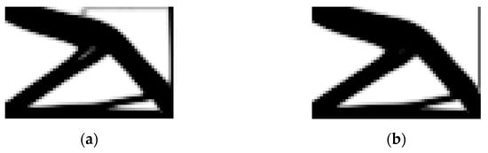 As shown in Figure 2, the result at the end of each outer loop is a solution that belongs to the Pareto set because it is obtained from one sub-TO problem, forming a trade-off relationship between compliances [58]. Therefore, this method is an algorithm for generating several Pareto solutions with different trade-off relationship setups for the compliances. However, after each outer loop, a Pareto solution is generated with better performance than the previous one (the maximum compliance becomes smaller). At this point, improving a structure that does not belong to the Pareto set holds no significance because it fails to represent any trade-off position of the compliances. In addition, starting at a point belonging to the Pareto front can increase the possibility of convergence to the true solution because it might be closer to the true solution than picking a point in an arbitrary manner. Thus, it is a good idea to start the algorithm at a point that belongs to the Pareto front, which is generated by an optimization algorithm.