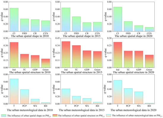 The factorial detection of the geographic probe explores the urban spatial morphology and PM2.5 pollutant spatial heterogeneity of the 2 + 26 cities by calculating the q-value. The specific equation is as follows:
