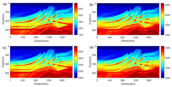 - Shin, C.; Pyun, S.; Bednar, J.B. Comparison of waveform inversion, part 1: Conventional wavefield vs logarithmic wavefield. Geophys. Prospect. 2007, 55, 449–464. [Google Scholar] [CrossRef]