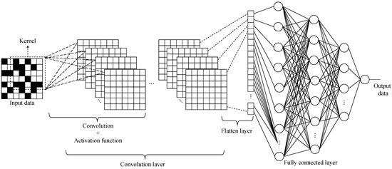 In the conventional linear equalizer (Section 2), the 2D received signal is convoluted with only one layer (5 5 matrix F) from the CNN perspective. To improve the conventional equalizer, we propose a CNN structure that extends many 2D convolution layers and creates a nonlinear equalizer. CNNs are frequently proposed in the image processing field to handle 2D signals. Therefore, in the HDS channel, the CNN is suitable for the 2D received signal on the project screen. Figure 3 shows the structure of the nonlinear equalizers.