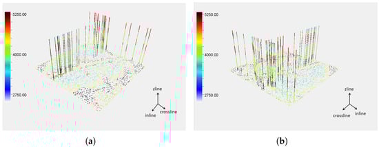 Figure 4a shows synthesized three-dimensional velocity field data. Subsequently, sampling of the synthesized simulated three-dimensional velocity field is conducted, as shown in Figure 4b. We use the sampling results as actual observed data. Moreover, we can set the sampling rate to evaluate the network’s three-dimensional interpolation capability by comparing different existing data volumes. This is then applied to subsequent real data.