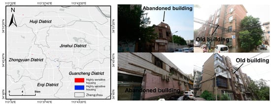 During the rainy season of 2021, the above methods identified a total of 875 houses that showed highly sensitive surface deformation, with almost equal numbers of houses with anomaly settlement and anomaly uplift. These houses are mainly located in the old and densely populated urban areas of the Guancheng and Erqi districts, and most of them are abandoned and old houses (Figure 7).