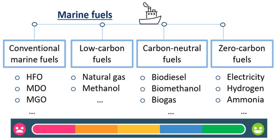 Alternative marine fuels widely investigated within the science community can be divided into low-carbon, carbon-neutral, and zero-carbon fuels (Figure 2).