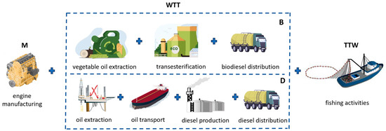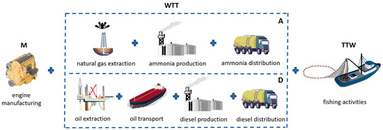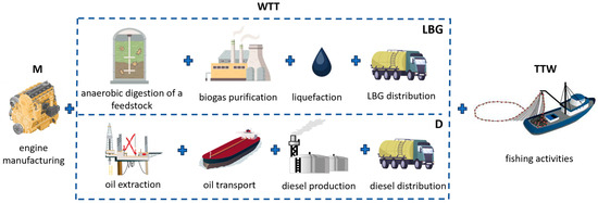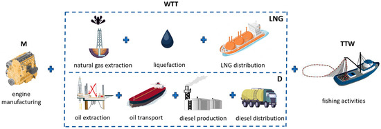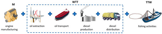 The processes included in the LCA of a diesel-powered ship are shown in Figure 6.