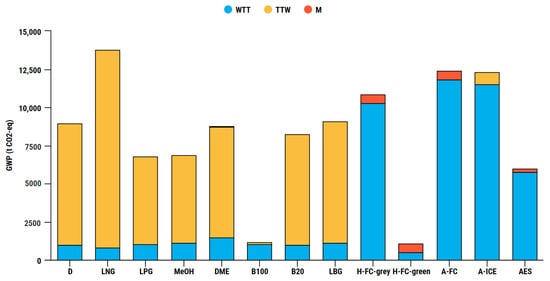 - Gilbert, P.; Walsh, C.; Traut, M.; Kesieme, U.; Pazouki, K.; Murphy, A. Assessment of Full Life-Cycle Air Emissions of Alternative Shipping Fuels. J. Clean. Prod. 2018, 172, 855–866. [Google Scholar] [CrossRef]