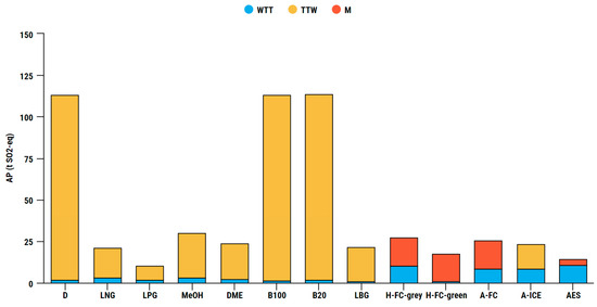 The contribution of a particular gas to acidification was evaluated by calculating Acidification Potential, AP (kg SO2-eq), obtained by multiplying the emissions of an acidifying gas by SO2-equivalence factors [86]: