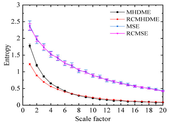 - HDME, grounded in the noise reduction theory of high-dimensional space mapping, aims to effectively mitigate the issue of traditional entropy’s abrupt changes. It integrates sample entropy vector distance measurement steps to achieve efficient vector differentiation in high-dimensional spaces. When applied to simulated signals, the method exhibits a smooth transition with similarity tolerance and demonstrates strong performance in terms of parameter consistency and sensitivity. By introducing the scale factor, the MHDME is proposed, and the RCMHDME is proposed by integrating the refined composite multi-scale criteria. Simulation results indicate that RCMHDME exhibits low sensitivity to parameters, smaller entropy error bars, and improved stability;