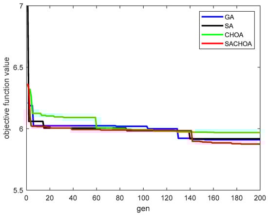 where f is a nonlinear disturbance factor; is the maximum number of iterations; is the random number within the range [0, 1]; is a random variable reflecting the distance between chimpanzees and prey; is a random variable reflecting the impact of prey position on chimpanzees’ position; and is a chaotic vector representing the impact of chimpanzees’ neutral movement during hunting.