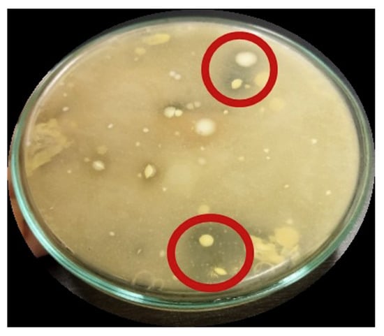 Dadih was sourced from a dadih producer located in Bukittinggi, a region in West Sumatra, Indonesia. The isolation of lactic acid bacteria was conducted in accordance with the methodology employed by previous studies [19]. The dadih sample was then diluted at 10−1–10−8 dilutions in 0.85% NaCl solution and 1 mL of each 10−3 to 10−8 dilution was taken and transferred into sterile petri dishes. After that, 1% (w/v) CaCO3 was added to the MRSA medium (Merck; Darmstadt, Germany) and incubated at 37 °C for 48 h.