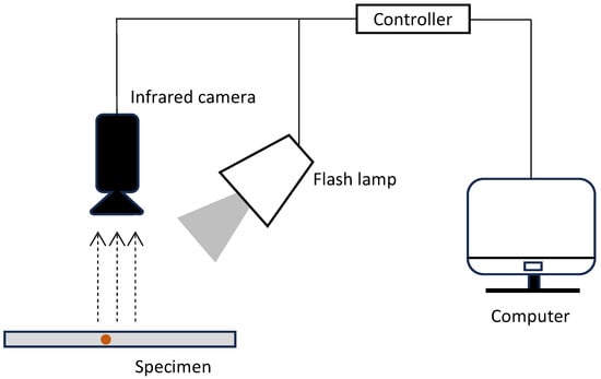 During the experiment, an infrared camera (FLIR SC5000) was employed to capture infrared images. Two high-power lamps, each with a power output of 4 KJ, were used to heat the specimens. The operation of the camera and the lamps was coordinated through a computer-controlled unit, ensuring precise timing for triggering events in predefined intervals. Initially, a signal is sent to activate the camera to start recording. After a certain time interval, a second trigger signal is sent to activates the flash. The camera, with a resolution of 320 × 256, records infrared video at a frequency of 10 Hz for 181 s. This process generated a dataset with dimensions of 256 × 320 × 1810 for each measurement.