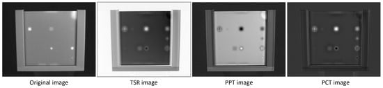 Raw PT images often lack sufficient contrast to accurately identify the location of defects and, thus, require preprocessing for detailed analysis. Techniques such as PCT [19], Pulsed Phase Thermography (PPT) [20], and Thermographic Data Reconstruction (TSR) [21] are prevalent in PT image analysis. These techniques are instrumental to enhance the contrast of defects and to reduce the dataset dimension. With these methods, the crucial features of the raw dataset can be effectively extracted.
