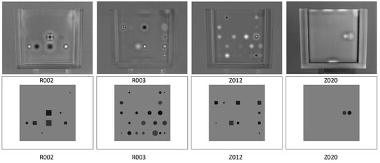 Table 1 provides the results of the objective labeling quality evaluation for both the manual labeling method and the CAD-based labeling method. To be specific, labels for defects in varying dimensions were evaluated. The dimensions of the defects ranged from 2 mm to 10 mm for round defects and equivalent side lengths for square defects. On the one hand, the area for each defect was calculated in pixels based on the labeling data. On the other hand, each area was also calculated by employing the relative diameter or side length, which was derived using the reference length measured between points A and B. The results, obtained using the MAE and MSE, clearly demonstrated that the CAD-based method significantly outperformed the manual labeling method, as evidenced by the reduced magnitude of the errors observed. This suggests that relying solely on labeling methods based on PCT images, which is currently the most-popular approach, may frequently result in inadequate levels of accuracy. Furthermore, it is important to note that the availability of 3D-CAD models in this case is directly linked to the fabrication of the PVC specimens from these models. In other scenarios where such models are not used, manual labeling is typically employed.
