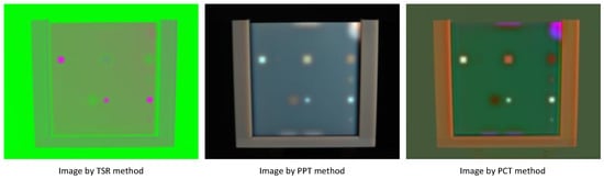 All training data underwent preprocessing using the TSR, PCT, and PPT methods. Specifically, TSR was executed with a 5 decomposition. This preprocessing resulted in multiple frames of images generated by each method. The coefficients generated by TSR and PCT and the phase coefficient generated by PPT were selected for further processing. For integration with the ImageNet pretrained model, three specific frames were selected to construct RGB-like images, as is shown in Figure 9. For the PPT, PCT, and TSR coefficients, frames from the second to fourth sequences were chosen, excluding the first frame. The rationale for this exclusion was that the first frame represents only the average temperature of all thermal sequences, which is less relevant in this context, which focuses on defects with significant thermal contrast.