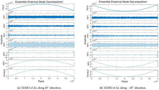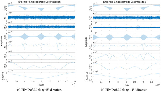 EEMD results for the cavity length change along the and −45° directions in the vibration test.