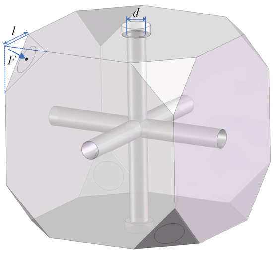 Apparently, the cavity length change is determined by the mechanical structure. However, there are only a few parameters that can be varied to optimize the cubic FP cavity. As shown in Figure 11, the truncating length of the FP cubic edge l, the diameter of the center hole d, and the magnitude of the supporting force F applied on four vertices are determined as the key design variables.
