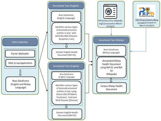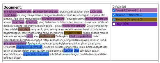 In order to ensure the accurate identification and labeling of biomedical-named entities within our corpus, we consult additional resources such as the Malay Wikipedia [27] and the dictionary from Dewan Bahasa [28]. These additional sources provide valuable insights into the specific linguistic and terminological nuances of the Malay language.