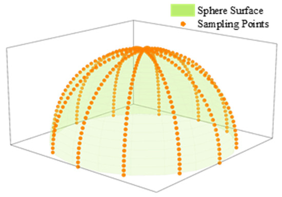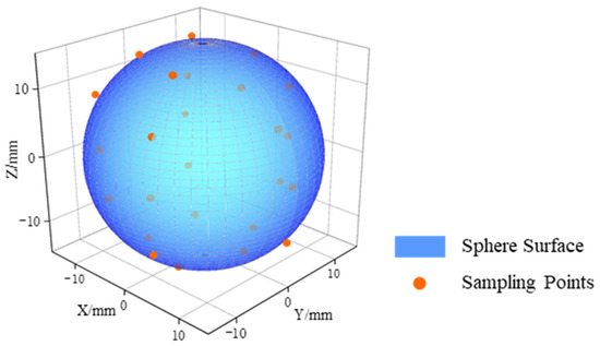 Dataset 3, consisting of 25 coordinate points, is provided in reference [36]. Figure 11 illustrates the distribution of dataset 3, with the coordinate points uniformly distributed on the sphere. Ten sets of replication experiments were conducted for dataset 3. Table 4 presents the results of the ten experiments, with a mean experimental result of 3.33251761616355 mm and a standard deviation of 0.8 × 10−14 mm.