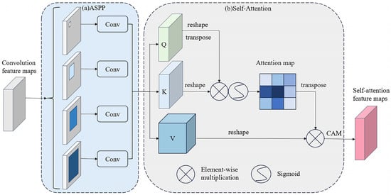 Structure of the CC-Net module. (a) Atrous Spatial Pyramid Pooling (ASPP). (b) Self-Attention.
