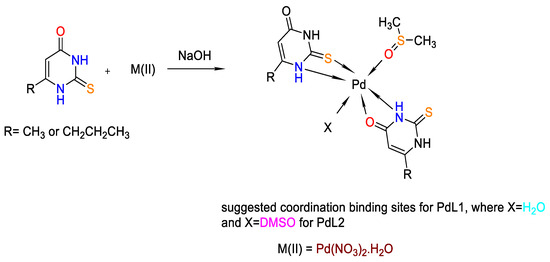 Synthesis of metal complexes of 6-methyl-2-thiouracil (L1) and 6-propyl-2-thiouracil (L2) with Pd(II).
