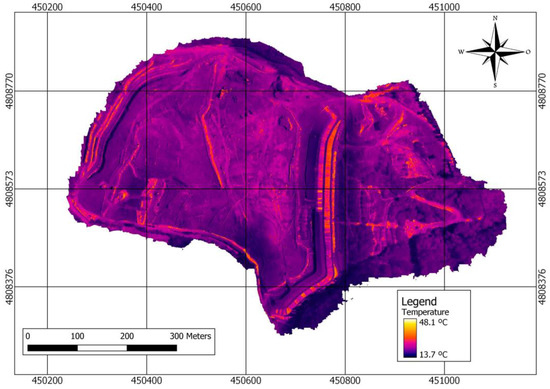 Complementarily, in order to guarantee the correct measurement of the surface temperature of the landfill, the thermal sensor was configured with an emissivity of 0.94 [67], which can be considered the average for the entire surface of the landfill due to the homogeneity of the MSW arrangement.