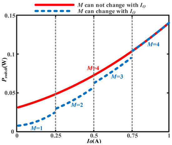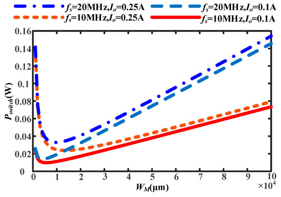 In (10), the power loss of the switch is determined by switching frequency, fs, output current, Io, switch size, WM, and parallel quantity, M. As usual, fs and Io are determined by the power supply requirements. In order to reduce power loss, WM and M are optimized as follows.