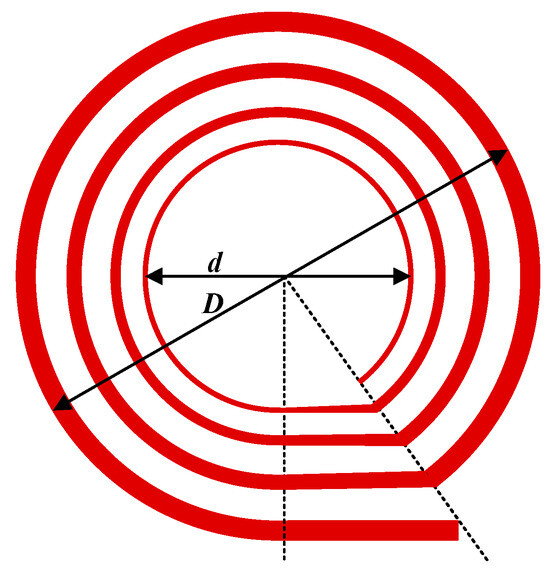For a planar spiral inductor, the outer diameter, D, inner diameter, d, coil turn, N, coil-wire thickness and width determine its profile and inductance value. Inductance values of planar spiral inductors with different winding structures are uniformly expressed as follows [40]: