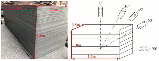 Sampling diagram of sandstone samples with different bedding angles.