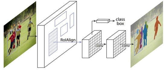 - He, K.; Gkioxari, G.; Dollár, P.; Girshick, R. Mask r-cnn. In Proceedings of the IEEE International Conference on Computer Vision, Venice, Italy, 22–29 October 2017; pp. 2961–2969. [Google Scholar]