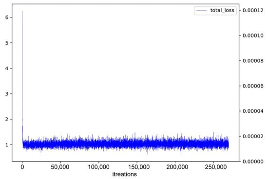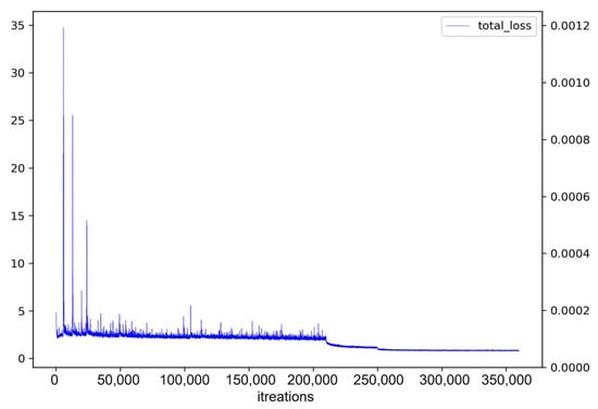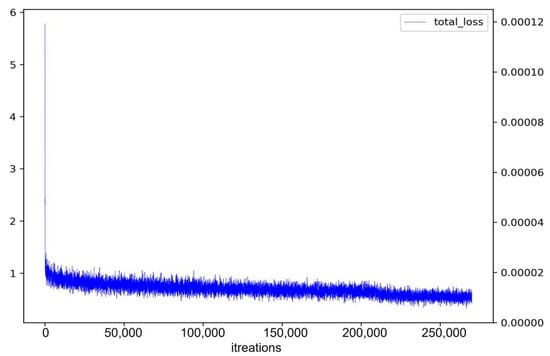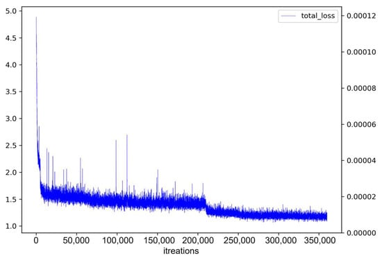 Figure 10 presents the loss value results for BlendMask. While high loss values were occasionally observed until about 200,000 iterations, generally the loss values followed a descending curve. This indicates that with continued training, loss values decrease, enhancing the model’s accuracy. However, with extremely small weight-update values, a vibration effect in model parameters was observed. This vibration phenomenon can undermine training stability and consistency, making it difficult to enhance performance.
