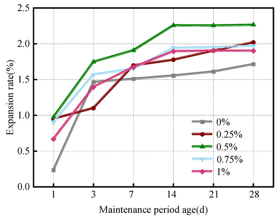 Expansion rate variation with different dosages of UEA-type expansion agent in test samples.