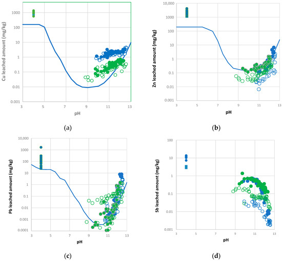 - Dijkstra, J.J.; Van Der Sloot, H.A.; Comans, R.N. The leaching of major and trace elements from MSWI bottom ash as a function of pH and time. Appl. Geochem. 2006, 21, 335–351. [Google Scholar] [CrossRef]