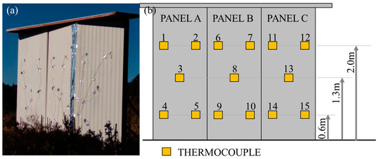 Experimental and Numerical Evaluation of a Wildland–Urban Interface Fire Scenario