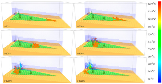 - Mell, W.; Maranghides, A.; McDermott, R.; Manzello, S.L. Numerical simulation and experiments of burning Douglas fir trees. Combust. Flame 2009, 156, 2023–2041. [Google Scholar] [CrossRef]