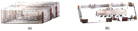 While preserving the geometric features of the point cloud model, uniform grid-based downsampling was employed. The resulting downsampled point cloud data for the conference room are shown in Figure 13.