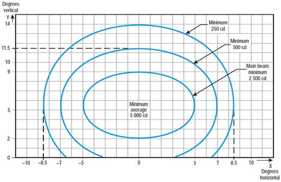 Isocandela diagram for touchdown zone lamp (white light) [1].