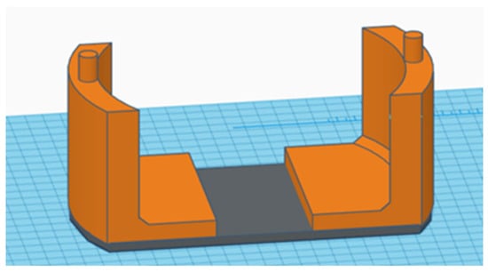 The measuring element of the system is the BH1750 illuminance sensor. Its spectral characteristic requires additional correction to the measurement range of the tested lamps. Such an analysis is presented in Section 5. The sensor is placed on the arm, and its position is changed in the vertical plane by a stepper motor. The second stepper motor provides the automatic rotation of the lamp on the horizontal axis. The 3D-printed mounting socket (Figure 4) holds the lamp steady in one position using two pins placed in original screw holes. The JK57HS56-2504 stepper motors [18] used in the measuring device use belt transmissions and a dedicated TB6600 controller.