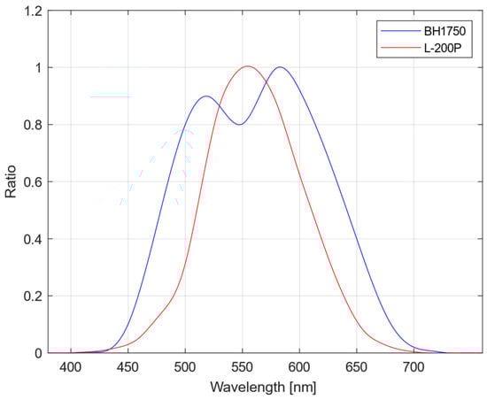 Spectral characteristic of BH1750 sensor and Sonopan L-200P luxmeter.