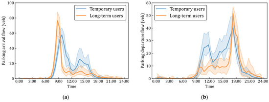 Temporal patterns of parking arrival and departure. (a) Arrival. (b) Departure.