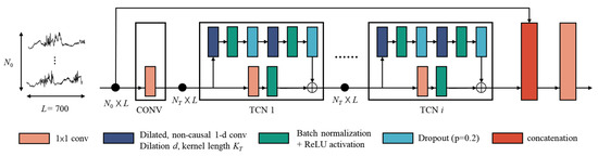 TCN architecture processing the number of vibration sensors (N0) × 700 samples.