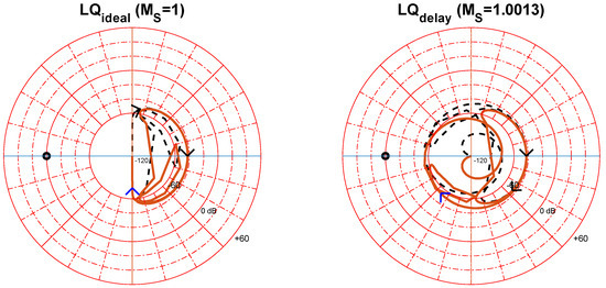 The maximum sensitivity of the LQ closed-loop control system has insignificantly increased due to a time delay, as illustrated in Figure 10. Therefore, according to Nyquist stability criteria, the closed-loop with an LQ controller is stable and robust.