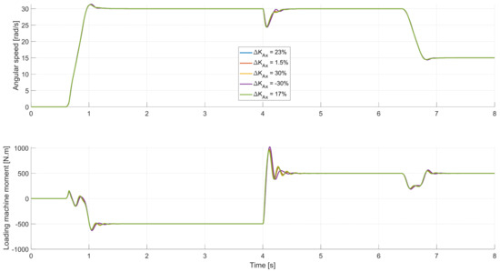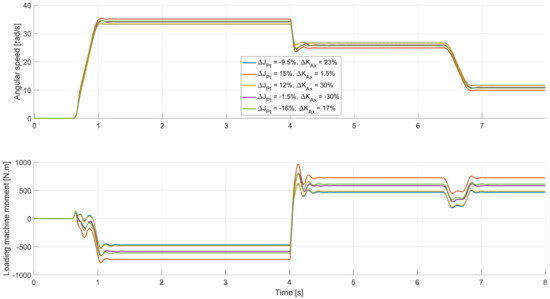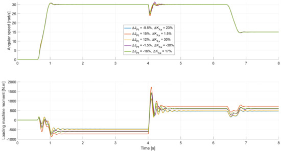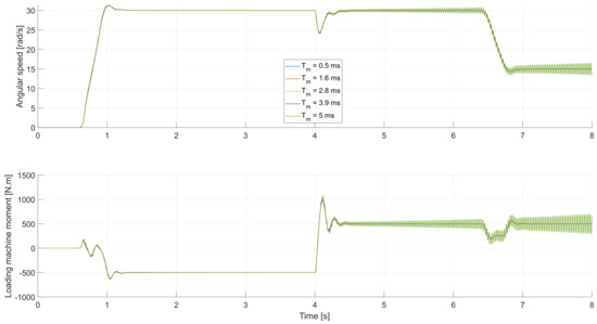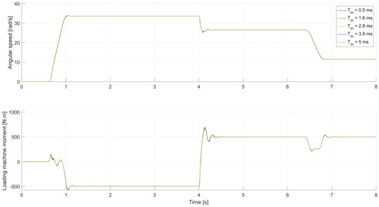 where Td is the time delay in the moment control loop and αt is the bandwidth of the electrical part of the VEL test bench (i.e., the inverter with the loading machine). If Td in the moment control loop of the inverter exceeds a certain level, it can lead to instability of the angular speed control loop, particularly if the high resonance frequencies need to be considered [10,23]. Therefore, the hardware setup of the electrical components should be optimized for small time delays and sudden changes at the moment.