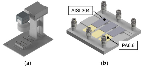 The combination of metals and plastics enables the formation of high-strength and lightweight structures via the combination of the low density, corrosion, and oxidation resistance of plastics with the extraordinary mechanical properties of metals. Typical applications for these hybrids include the automotive industry [1], aerospace industry [2] or in the field of healthcare [3]. Common joining technologies for plastic–metal hybrids are mechanical joining processes [4,5,6], adhesive bonding [7,8,9] and direct thermal joining. Among the thermal joining methods, alongside induction [10] or ultrasound [11], lasers can be used to join metals to thermoplastics [12,13,14]. In recent years, the combination of laser and ultrasound was also investigated [15]. Due to the highly efficient and non-contact energy input via laser, this field of research received great attention relating to direct thermal joining processes.
