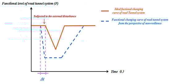 From the perspective of resilience, the road tunnel system can predict and forewarn the external disturbance so that it can deal with the influence in advance. The threat of external disturbances to the road tunnel system function will be greatly reduced, and the road tunnel system will show better resilience. Therefore, the road tunnel system function will exhibit the following characteristics, as shown in Figure 6: