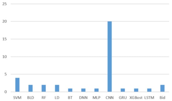 The next step is the data splitting strategy, which includes cross-validation and random splitting approaches used to split datasets into training and testing sets. The cross-validation approach divides the dataset into 3, 5, or 10 parts to evaluate the classification models [53]. The random splitting approach employs a small fraction of the testing set to evaluate the model (e.g., 70% training set, 15% validation set, and 15% testing set). In addition, some studies use the above splitting strategies with either a subject-wise or non-subject-wise approach. In a subject-wise approach, the training and testing sets do not share any patient’s recording samples. Therefore, the patients whose recordings are used in the training set are excluded from the testing set. In contrast, a non-subject-wise approach uses the same patients’ recording samples in the training and testing sets.