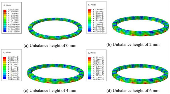 - A greater cushion block unbalanced height results in higher bending elastic modulus and lower axial strength in the windings. When the unbalanced height is 2 mm, 4 mm, and 6 mm, the maximum axial bending stress in the windings increases by 12.02%, 21.57%, and 31.17%, respectively. The impact of increasing cushion block unbalanced height on winding strength reduction is almost linear.